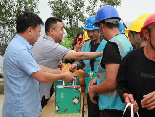 馬江利一行親切慰問工作在一線的職工們,為他們送上了白糖、水杯、茶葉、毛巾等防暑降溫用品,并叮囑他們一定要注意防暑降溫,勞逸結(jié)合,合理安排項目現(xiàn)場施工,做好夏季安全防護工作。