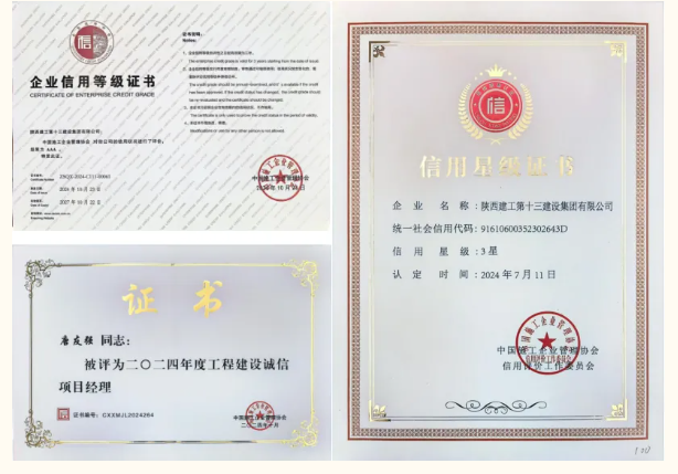 近年來,陜建十三建集團(tuán)高度重視企業(yè)信用建設(shè),堅持把誠信經(jīng)營作為企業(yè)高質(zhì)量發(fā)展的基石,秉承“敬業(yè)守信、勇?lián)?zé)任、建造精品、追求卓越”的企業(yè)精神,在堅定屬地市場的同時持續(xù)開拓域外市場,不斷壯大主業(yè)規(guī)模,樹立良好的口碑和品牌形象;踐行“四新”戰(zhàn)略,拓展新領(lǐng)域、新業(yè)態(tài),助推企業(yè)轉(zhuǎn)型升級和高質(zhì)量發(fā)展;加強(qiáng)工程項目精細(xì)化管理,守好安全底線,嚴(yán)把質(zhì)量關(guān),推動項目實現(xiàn)優(yōu)質(zhì)履約;提升內(nèi)控工作水平,強(qiáng)化制度建設(shè)與風(fēng)險防控,保障企業(yè)規(guī)范平穩(wěn)運行。集團(tuán)先后榮獲延安市建筑業(yè)AAA級信用企業(yè)、陜西省信用協(xié)會信用建設(shè)先進(jìn)單位。